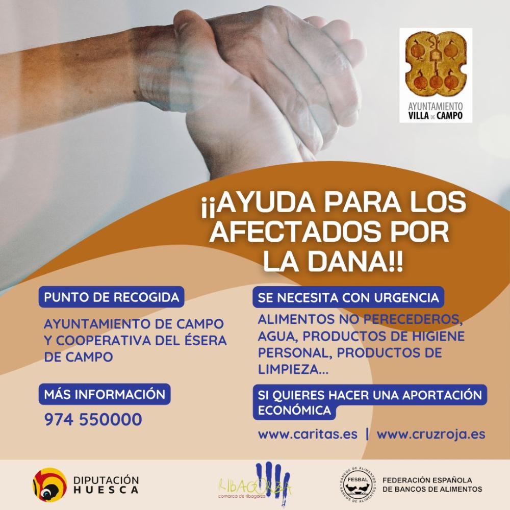 La Comarca de Ribagorza los Ayuntamientos han habilitado puntos de recogida para ayudar a los afectados por la reciente DANA. Puedes colaborar con alimentos no perecederos, agua, productos de higiene, productos de limpieza y mucho más. Toda ayuda es necesaria y urgente en este momento.