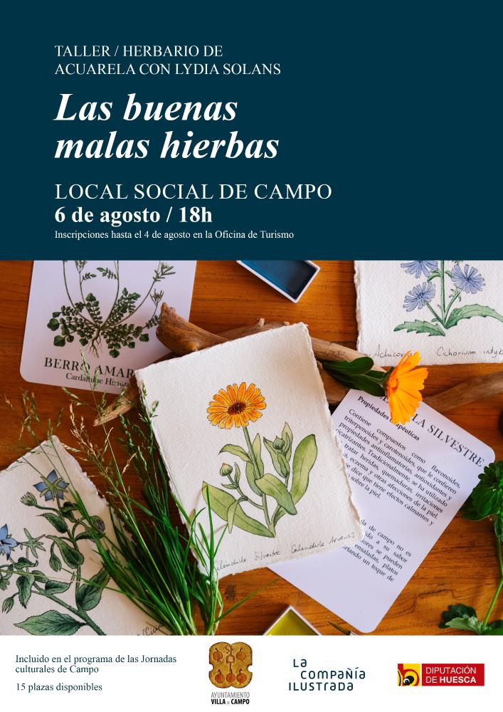 Taller/herbario de acuarela con Lydia Solans "Las buena malas hierbas" el 6 de agosto a las 18h en el local social. 15 plazas. Puedes comprar tu tiquet desde el miércoles 24 de julio en el Museo de Juegos Tradicionales de 10-12h y 18h-21h.